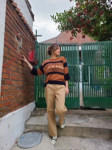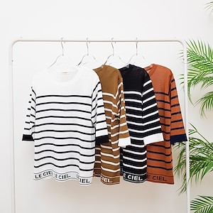 韩国东大门初秋条纹字母针织衫