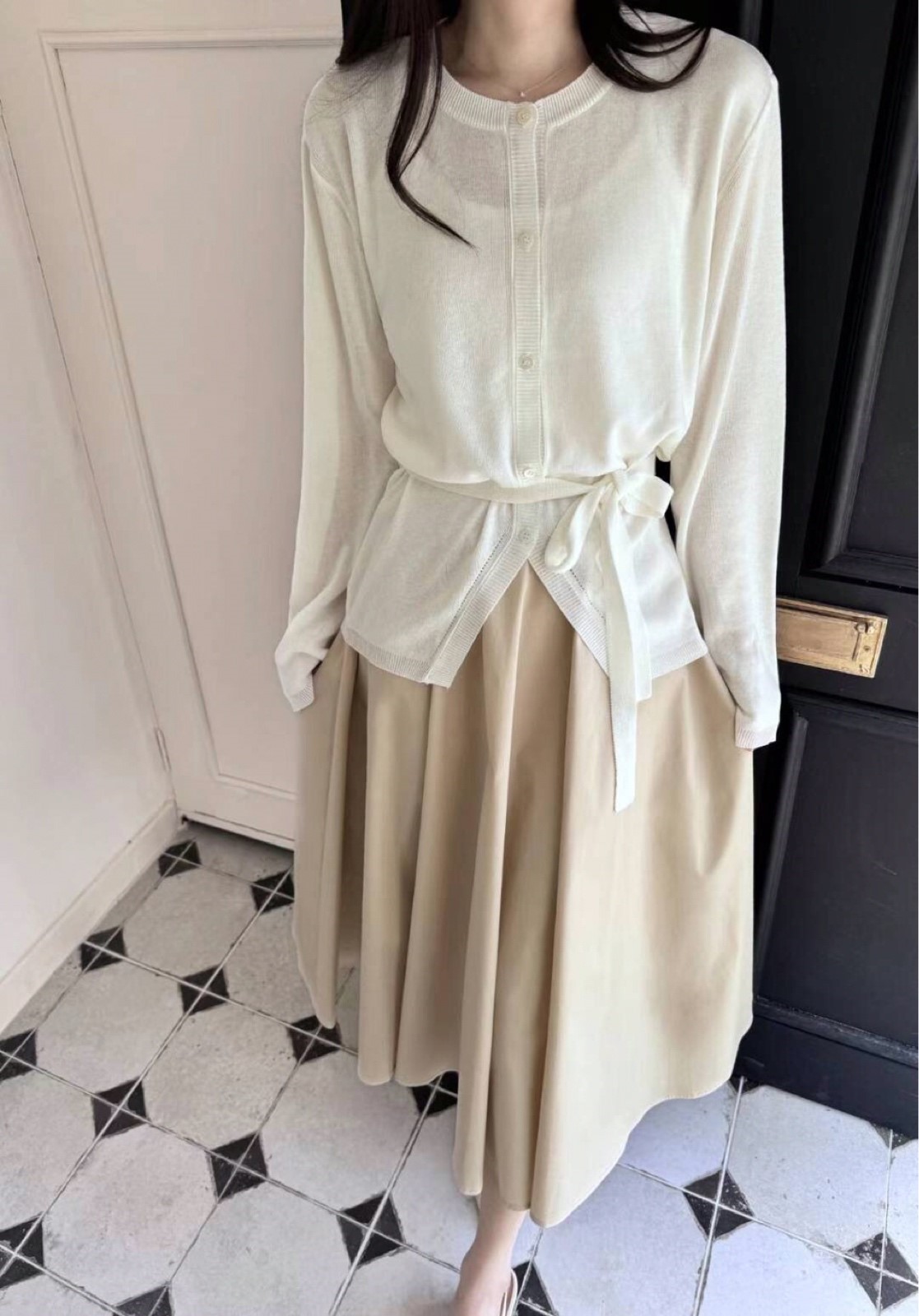시스루 그물 니트 크롭 가디건