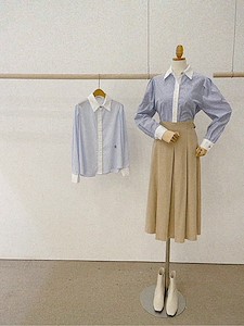 ST 배색 셔츠(자수남방스트라이프블라로고블라우스단추BL히든소라)1