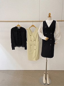 브이넥 단추 원피스 (v넥미디롱레이어드ops오피스룩트임주머니롱)