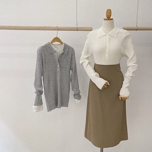 카라 골지 니트(단추긴팔울그레이)