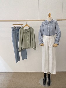 데님 셔링 BL (면BL진주셔츠블라코튼브라우스카라셔츠남방가을블라우스진청)