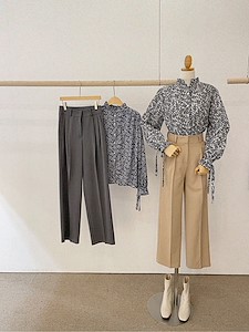 차이나 샤틴 블라우스 (사틴BL끈브라우스프릴블라셔링퍼프소매트임단추바지코디