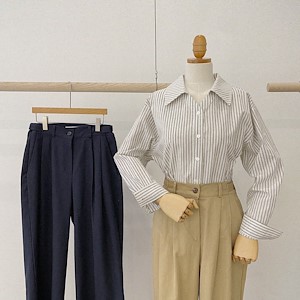 st블라우스스트라이프셔츠단추끈블라남방와이드오버핏브이넥코디