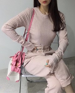 체크라운드쭉T