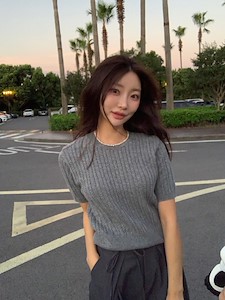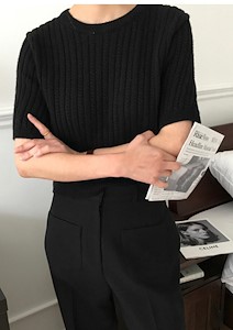 반팔꽈배기니트