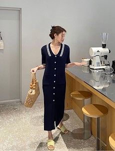 골지배색원피스