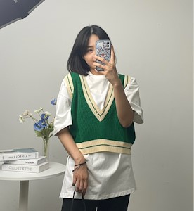 배색니트조끼
