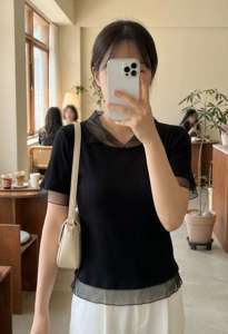 【材质及说明】#제이투 #신상 #동대문 #도매 #디오트 #theot #TheOT2j2 #여성의류 #데일리룩 #2026SS #신상 #여름신상 #티셔츠 #반팔티 #골ㅈ티 #쉬폰 #망사 #배색 #반응최고 #단가착함